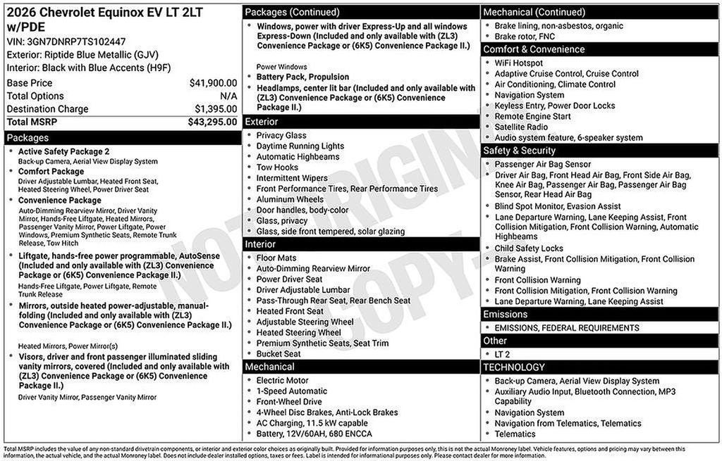 Riptide Blue Metallic 2026 Chevrolet Equinox EV LT FWD 1-Speed Automatic Electric Motor