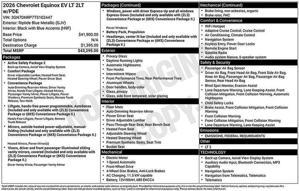 Luck Chevrolet Processing Fee* Internet prices do not include $999.00 Processing Fee, DMV Fees or any applicable taxes. New vehicle internet prices also do not include any add on equipment and/or BUYER SELECTED suspension lift, body lift, any truck body (for commercial vehicles), custom wheels, custom tires, custom paint or other similar aftermarket products (either depicted or not depicted on website) on these specialty items, which can be added to a vehicle. While every attempt has been made to ensure the accuracy of the data displayed, the dealership is NOT RESPONSIBLE for any errors or omissions. Luck relies on third party companies to display the pricing and technical specifications. Technology glitches can cause the incorrect information to display and the dealership is not responsible for the resulting errors. Must present internet ad prior to sales for ad price. These prices are not to be combined with any other Luck offers. See a manager for more details. The results of this calculator should only be used as an estimate. Actual financing plans require more complex calculations than the simple compounded interest used in this program. Price includes: $8000 - Chevrolet Consumer Cash Program. Exp. 03/02/2026 $500 - Exp. 03/02/2026 $2,814 - Exp. 03/02/2026 $1,000 - Exp. 03/02/2026