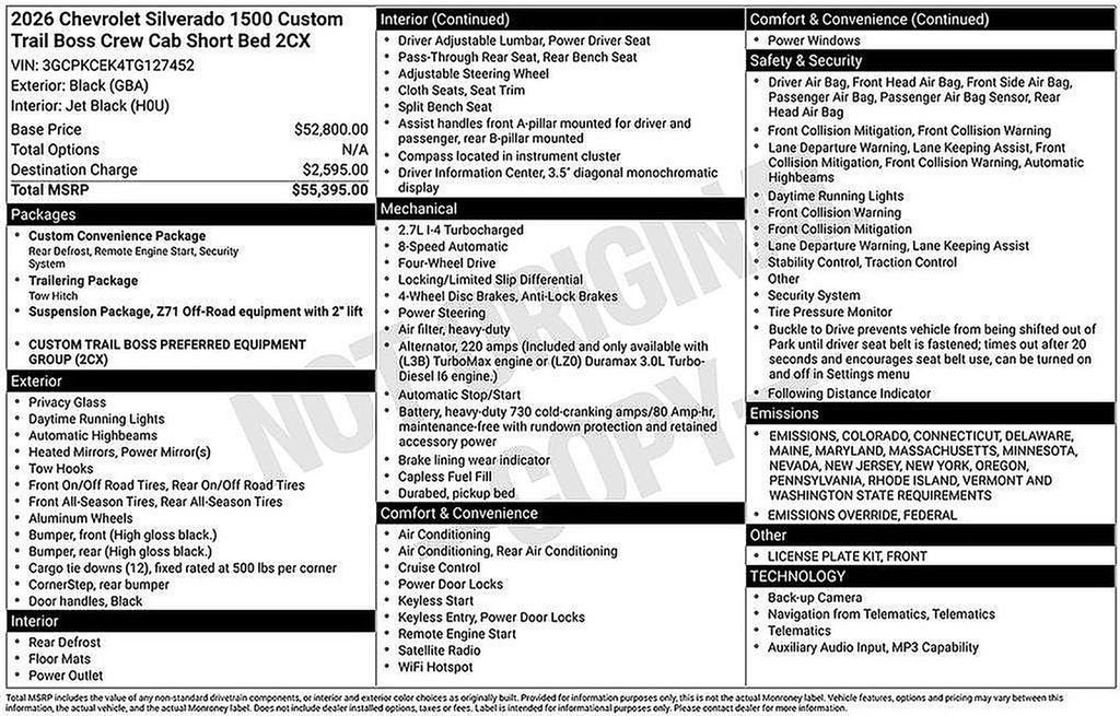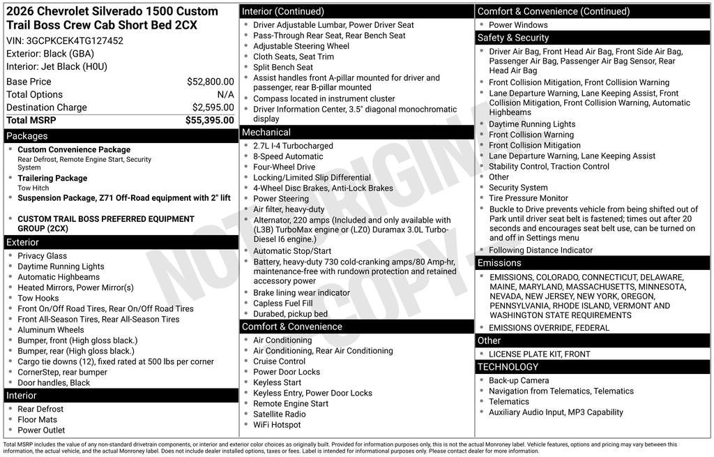 - Custom Trail Boss Preferred Equipment Group includes standard equipment