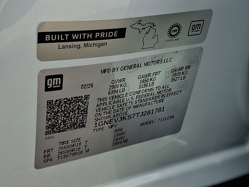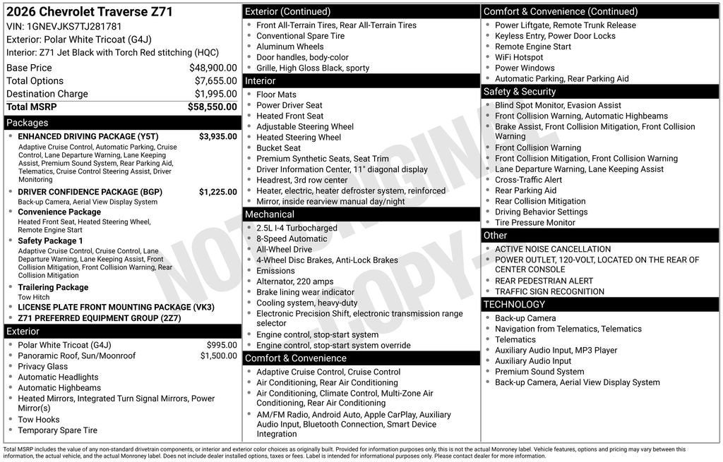 Polar White Tricoat 2026 Chevrolet Traverse Z71 AWD 8-Speed Automatic 2.5L DOHC