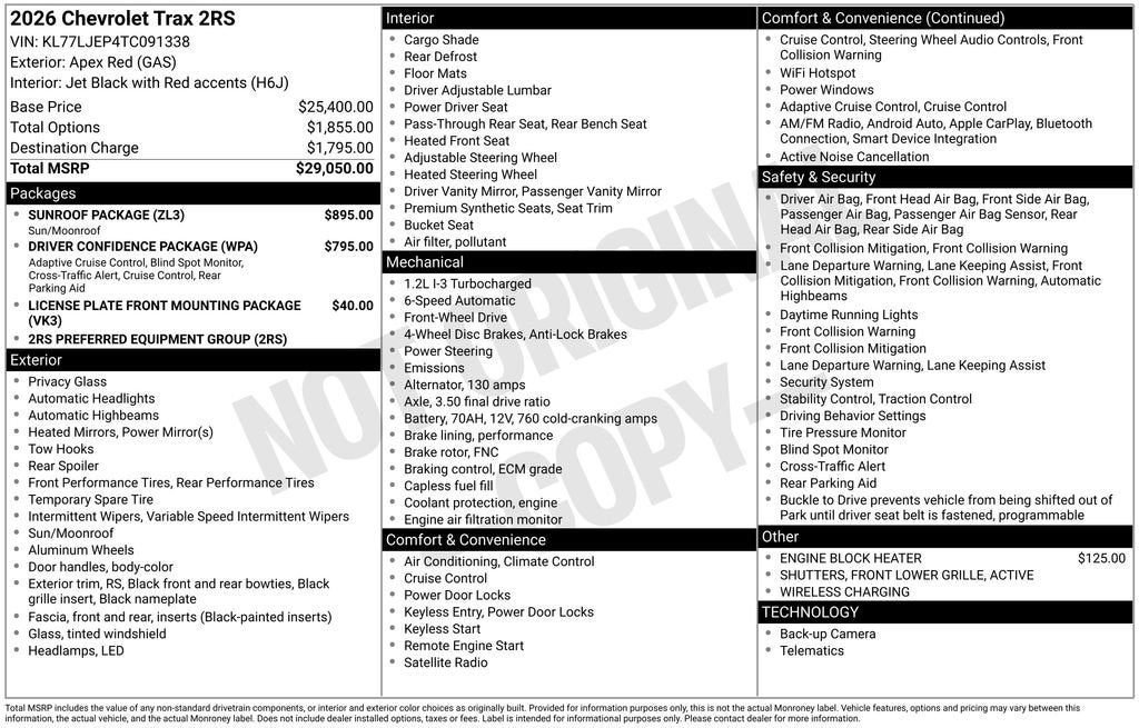 Apex Red 2026 Chevrolet Trax 2RS FWD 6-Speed Automatic ECOTEC 1.2L Turbo