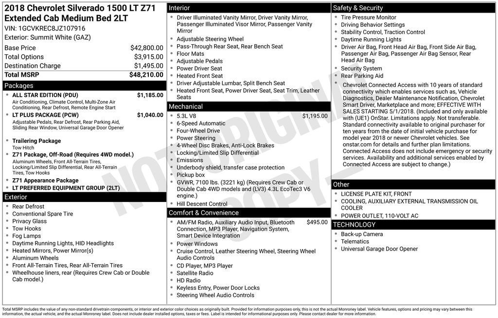 Summit White 2018 Chevrolet Silverado 1500 LT LT2 4WD 6-Speed Automatic Electronic with Overdrive EcoTec3 5.3L V8