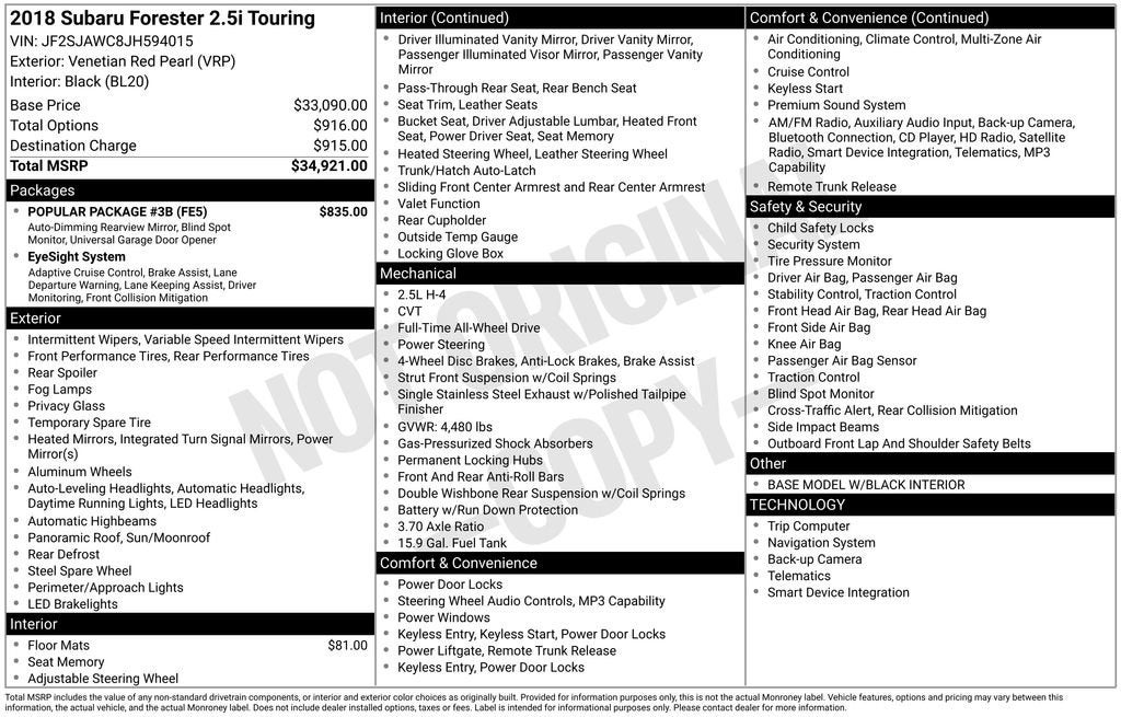 2018 Subaru Forester 2.5i Touring