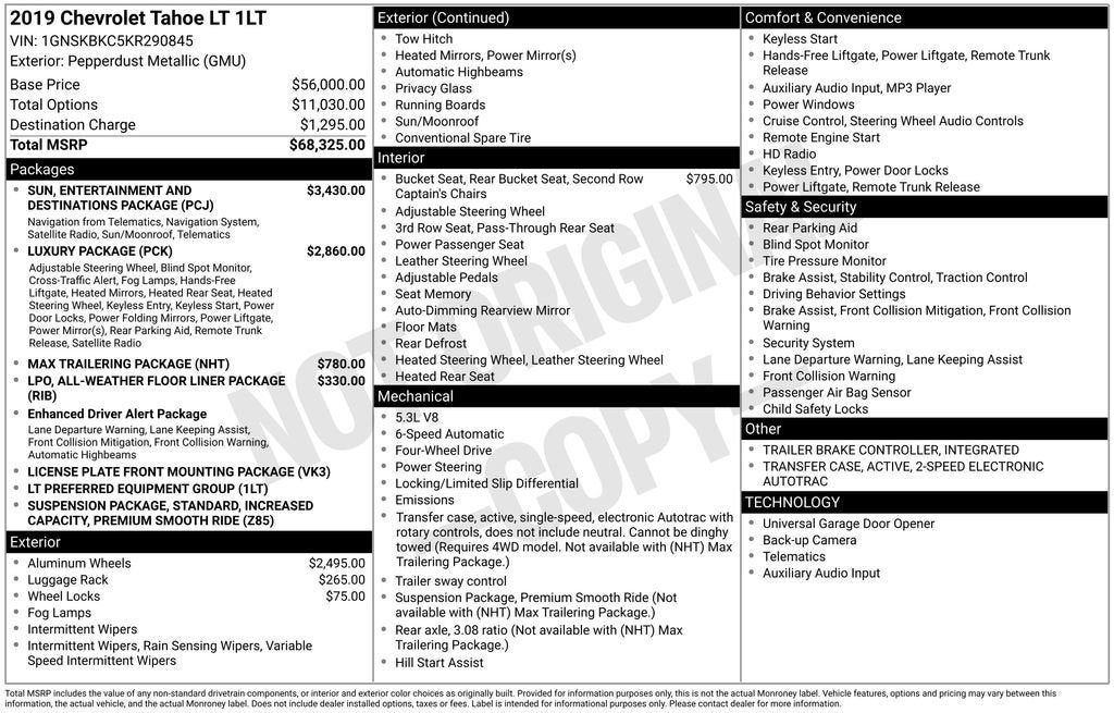 Pepperdust Metallic 2019 Chevrolet Tahoe LT 4WD 6-Speed Automatic Electronic with Overdrive EcoTec3 5.3L V8