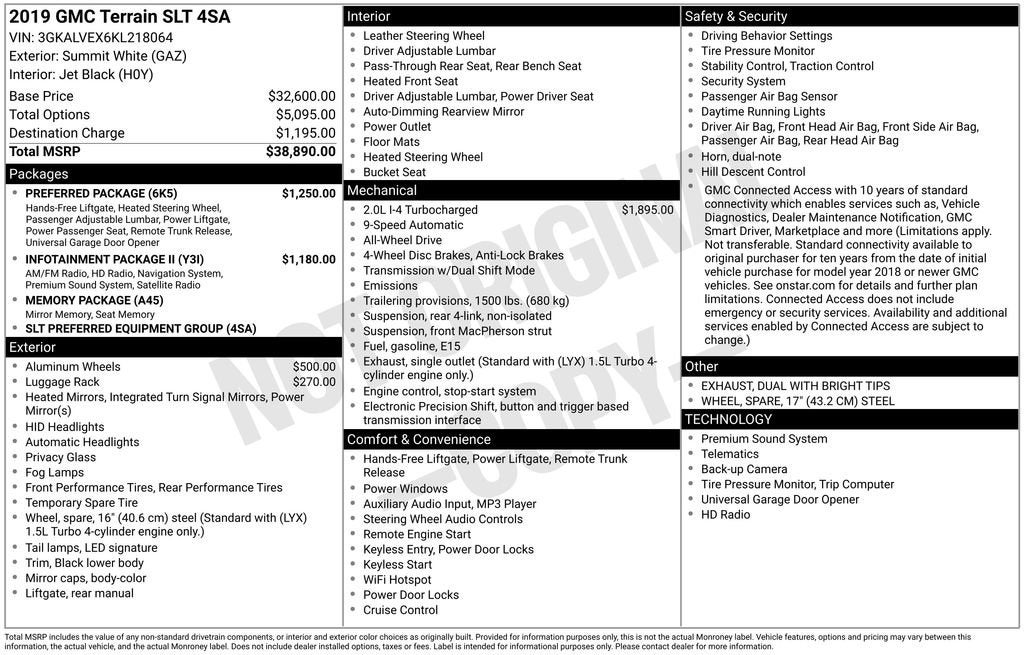 Summit White 2019 GMC Terrain SLT AWD 9-Speed Automatic 2.0L Turbocharged