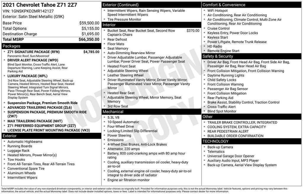 At our dealership, we pride ourselves on providing exceptional customer service and a hassle-free buying experience. Our knowledgeable sales team is here to answer any questions you may have and help you discover all the ways this Tahoe Z71 can enhance your driving experience.
